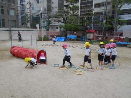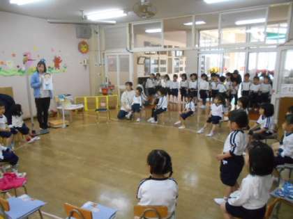 さくら組(3歳児)のはじめての発育測定がありました。きく組(5歳児)がお手伝いにきてくれました。脱いだ洋服をたたんでくれたり 一緒に絵本を読んで順番を待ってくれたりと大活躍でした。発育測定の後は一緒に園庭で遊びました。