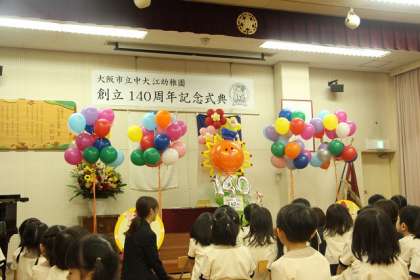 今日は、中大江幼稚園の創立140周年記念式典でした。