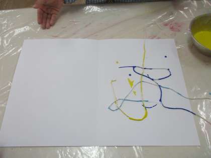 凧糸に絵の具をつけて、画用紙にくねくねっと置きます。