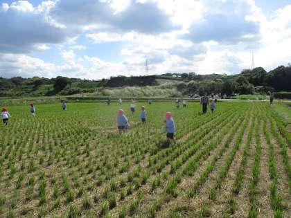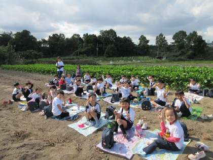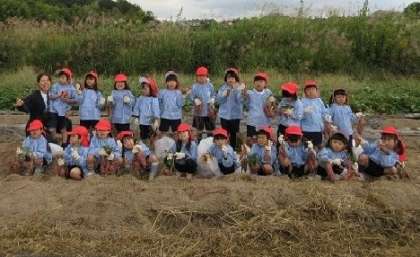 今日は、バスでおいもほりに行きました。大きなおいも、細いおいも、ちいさなおいもなどなど!いろいろな形のおいもが土の中から出てきて子どもたちも大喜びでした。お家の人の作ってくださったおにぎりも、とてもおいしかったです。稲刈り後の畑でも遊んで大満足の園外保育でした。