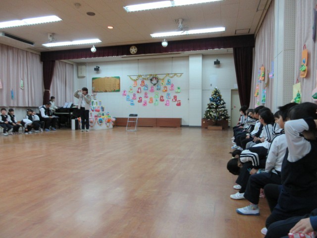 今日は「お楽しみ会」でした。みんなで12月の歌やダンスを楽しんでいると、鈴の音と共にサンタさんがプレゼントを届けにきてくれました!子どもたちの夢が広がったひと時でした。