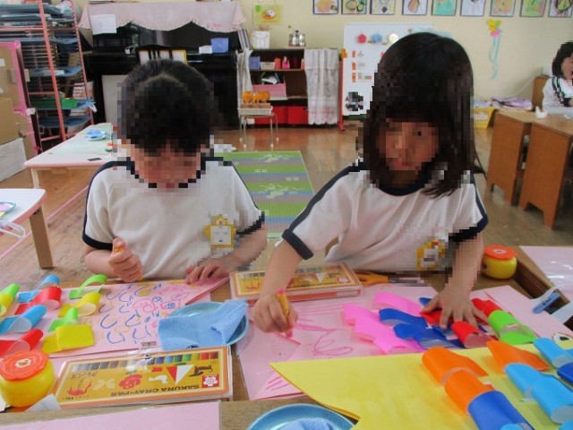 きく組では、昨日からこいのぼりをつくって遊んでいます。