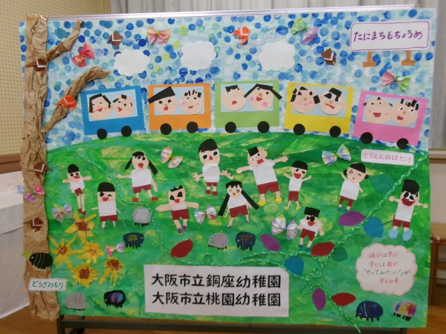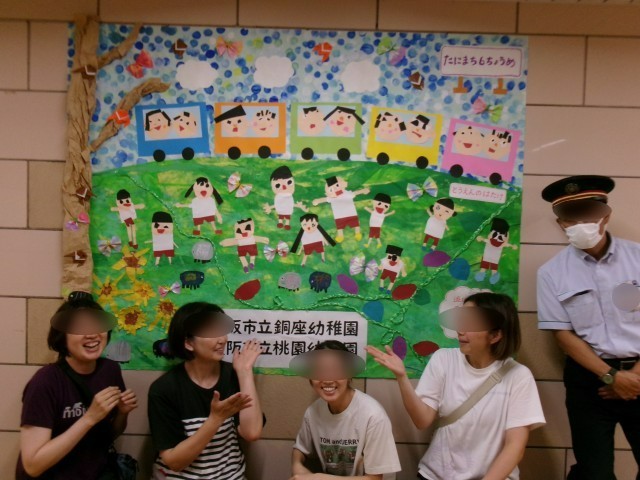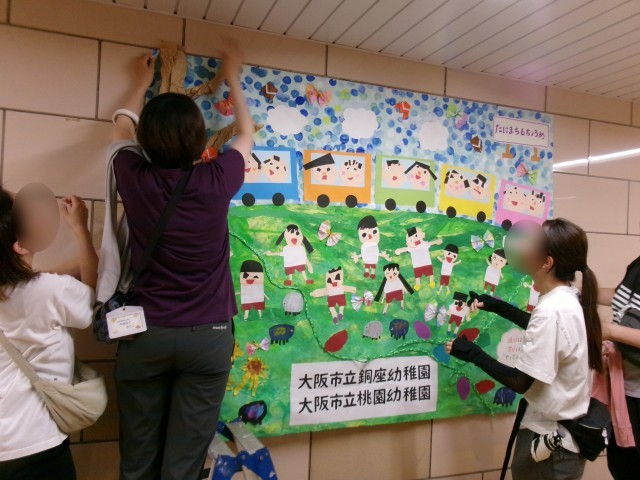 大阪市立幼稚園のアピールになればと、谷町六丁目駅の構内に、銅座幼稚園と桃園幼稚園の合同作品を展示させていただきました。