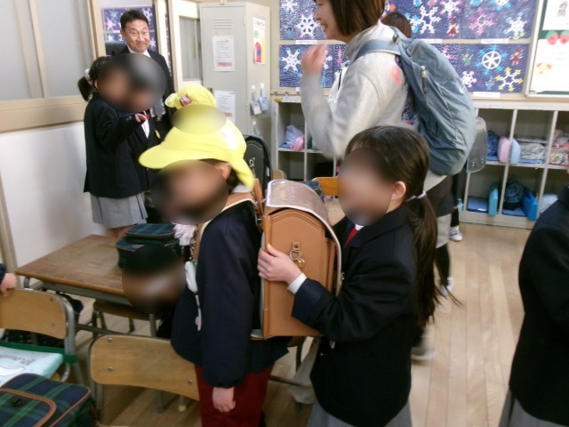 そして、各教室に行ってランドセルを背負わせていただいたり、学校を案内していただいたり…。