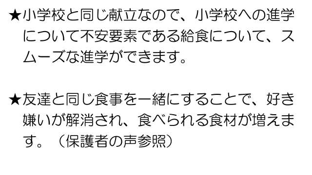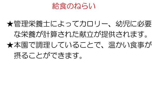 園内調理なので、温かく、とてもおいしい給食を毎日食べています
