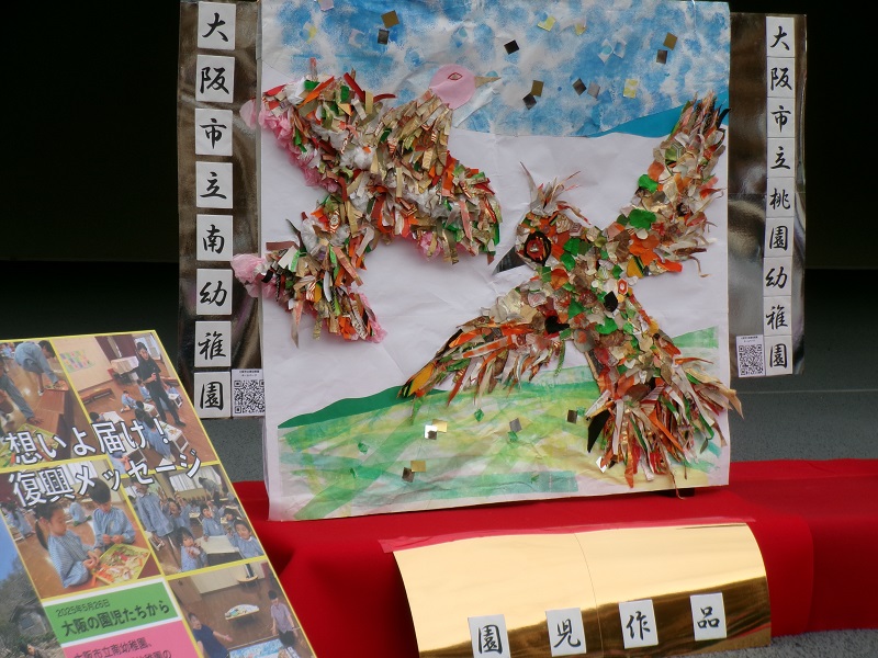 幼稚園で製作した“復興を願っての鳥”を万博で披露しました。