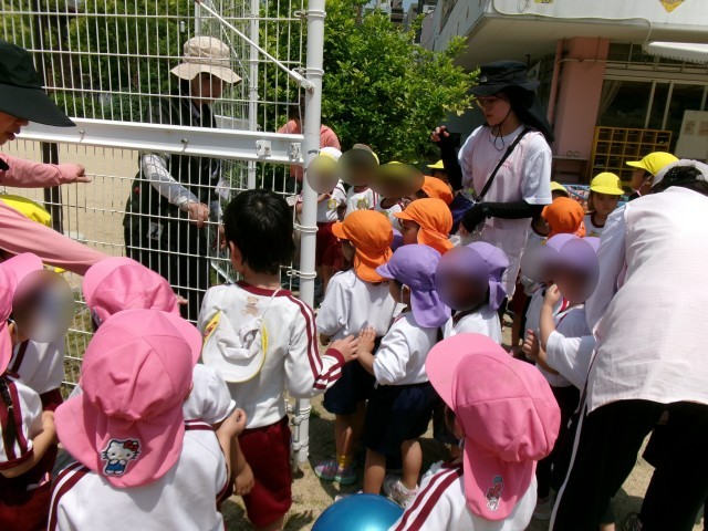 桃園幼稚園で人形劇を開催することになったので、お誘いしました。快く来てくださり、一緒に鑑賞しました。