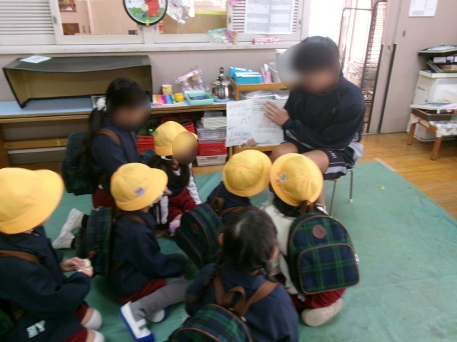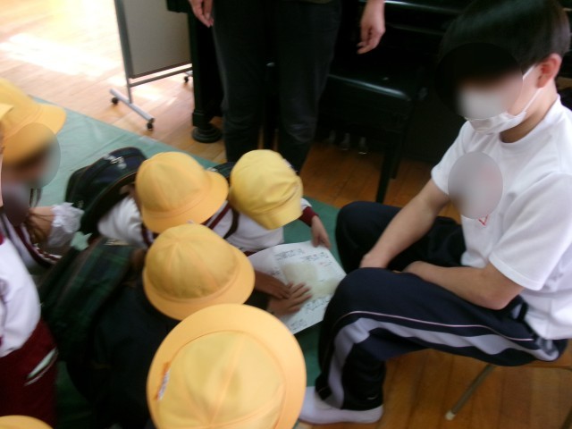 職場体験では、上町中学校の生徒が子どもたちと2日間一緒に過ごします。最後に、手作りの絵本を紹介してくれました。