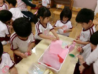 お花紙をギュッギュッギュッ (4歳児)