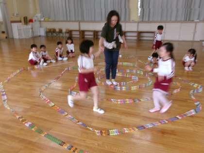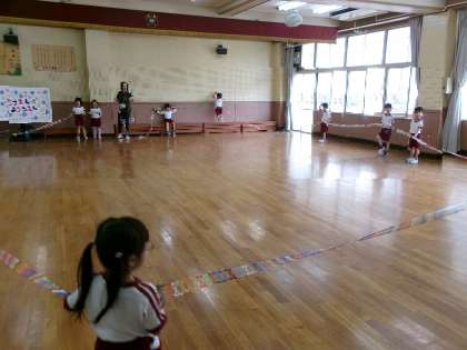 全部つなげてみんなでもってみると、プレイルームギリギリなくらいの円に・・