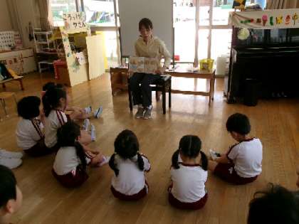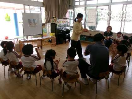「早寝早起き」については、絵本『ねこすけくん 何時にねたん?』の読み聞かせの後、実際に寝ている時間、起きている時間を聞きながら、ポイントをおさえました。