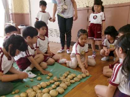10個入れると、みんなが一度にタライに入れ出したので、数が分からなくなり・・