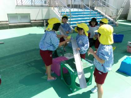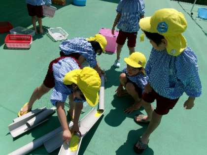 これまでの砂場で遊んでいたこと、昨年の経験で、高低差はつかんでいたようです。
