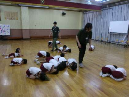 と言うと、子どもたちは素早く隠れます(丸くなる)