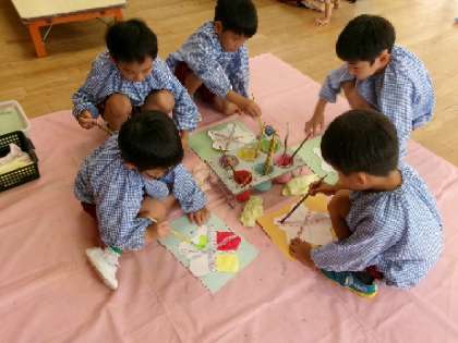 どうなるのかな・・ (5歳児) 公開日 2024/06/28 更新日 2024/06/28 園児の様子 紙に、思い思いにマスキングテープを貼り、できた部屋を絵の具で丁寧に塗っていました。 これから、どうなるのでしょうね・・ いいね(0)