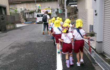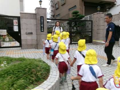 地域に散歩 到着したのは・・(5歳児) 公開日 2024/07/02 更新日 2024/07/02 園児の様子 雲行きが心配だったので、傘をもって地域散歩へ! 園の近くにある観音坂を上がり、大きな横断歩道を渡り、空堀商店街を抜けて・・ 右に曲がって坂を下っていくと・・ 大きな建物が! 到着したのは上町中学校でした。 いいね(0)