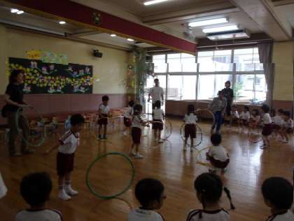 また、フープをロケットや星に見立てて誕生児が遊びました。