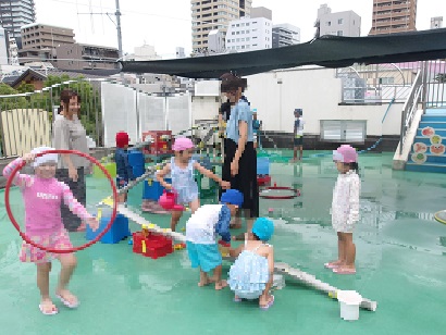 4歳児の保育参加 ウォーターパークで大騒ぎ