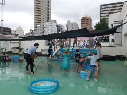 5歳児 保育参加2回目(ウォーターパーク) 公開日 2024/07/11 更新日 2024/07/11 園児の様子 雲行きがあやしかったのですが、気温も水温もあり、湿度も高かったので、水あそびを行い、保育参加も実施しました。 ウォーターパークに行く前、プレイルームで縄遊びをしていたこともあり、水遊びスタートから勢いがよかったです。 子どもたちもおうちの方も笑顔いっぱいでした。 いいね(0)
