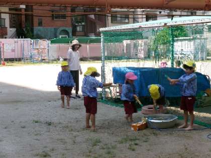 水鉄砲ではウォーターパークで遊んだ記憶が強く、すぐに水のかけ合いになってしまっていました。