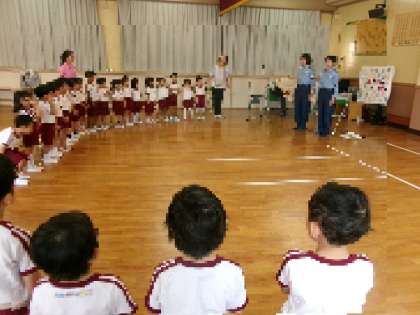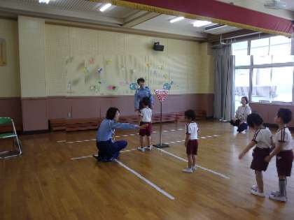 種花事業の後、2階プレイルームで南警察署の方から、交通安全指導をうけました。