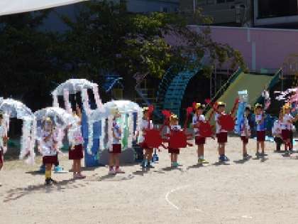延べ、37分という超大作でしたが、子どもたちはそれぞれの流れを自分たちのものにして表現していました。4歳児、5歳児お互いの姿を見ながら、刺激されているのがとても伝わりました。応援している姿もかわいかったです。