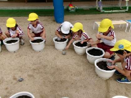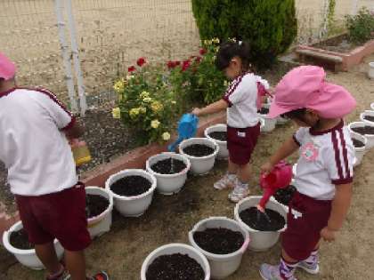 今日、一人10粒のカブの種を蒔きました。