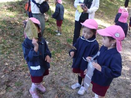 沢山のドングリを見つけたり、色付いた葉を手にしたり・・