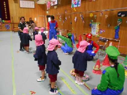 歌の披露のあと、体育館のゲーム、多目的室での地域のコーナーで遊びました。