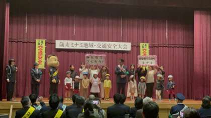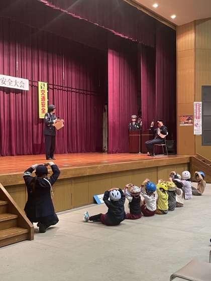 ヘルメットをかぶりましょう 公開日 2024/12/03 更新日 2024/12/03 園児の様子 中央会館で行われた『歳末 ミナミ 地域・交通安全大会』に参加してくれた子どもたちは、元プロ野球選手の福留孝介さんと交通ルールのクイズに挑戦!みんな大正解でしたね。最後は、保護者の方も一緒に壇上に上がって、「みんなでつくろう 安全安心なまちミナミ」と呼び掛けました。 自転車に乗る時は、ヘルメットを着用しましょう! 【12月2日】 いいね(0)