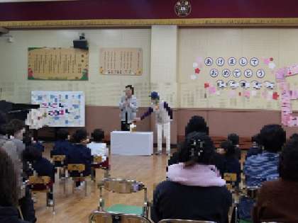 始業式では正月飾りの意味をみんなで聞いたり、♪たきび♪の歌をうたったり・・