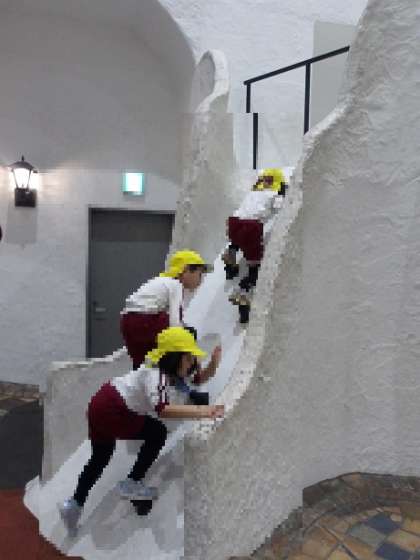 館内の中央にあるこどもの街でもアスレチックやチューブスライダーなどで