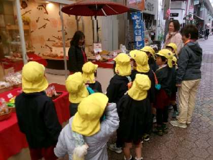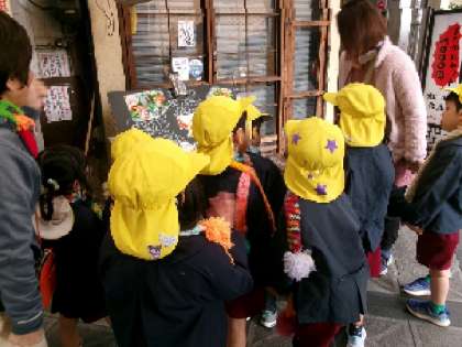 手づくりマフラーをつけて商店街へ (5歳児)