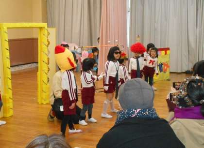 桃園マークの百貨店〜♪ うえへまいります1 (5歳児) 公開日 2025/02/05 更新日 2025/02/05 園児の様子 劇の始まりの前にお客さんへチラシを配って 桃園デパートが開店しました! 2階 洋服売り場 お客さんは見事 お気に入りのハンターに変身! 9階 忍者売り場 あれ? 誰もいない? 実は忍者が「見つからないの術」で隠れていたのです・・ いいね(0)