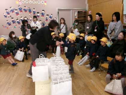 保育修了式で修了児が小学校に行く切符 保育証書を受け取っていたのをみていた4歳児