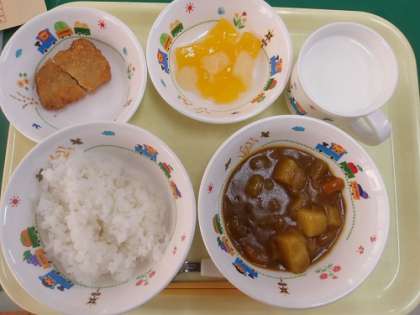 本日は、5歳児のみの給食ですが、カツカレーです!