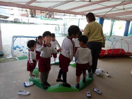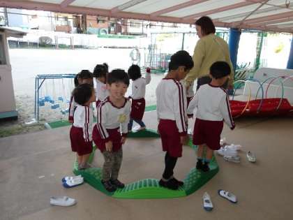 テラスの遊び 公開日 2025/04/15 更新日 2025/04/15 園児のようす テラスから賑やかな声が聞こえてくるので行ってみると、みんなで遊んでいました。。 落ちたらワニがいる! 足つぼみたい! など、友達や先生と楽しく遊んでいます。 いいね(0)