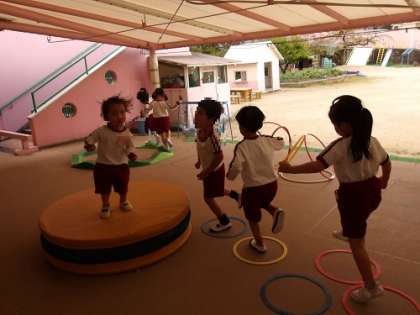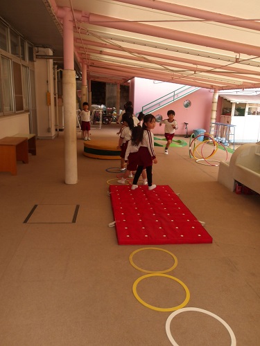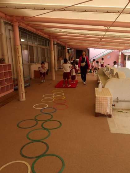 朝のテラスの様子 公開日 2025/04/16 更新日 2025/04/16 園児のようす 登園してきた子どもたちから、遊び始めます。 今日はテラスのフラフープは5歳児が並べたそうです。 自分たちで遊びの準備をすることも楽しいことです。 どんな風に遊ぶのか考えながら、時には遊びを変化させて遊びます。 準備された環境だけで遊ぶのではなく、自分の遊びたい遊びを自分で考え、自分で準備し、遊びを展開していくことも大切です。 いいね(0)