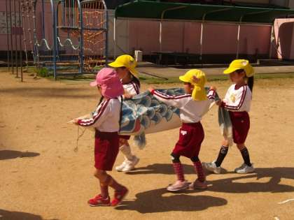 こいのぼりを揚げる 公開日 2025/04/17 更新日 2025/04/17 園児のようす みんなで行進のあと、こいのぼりを揚げました。 ♪「屋根より高い〜」のあと、 ♪「風をふけふけ」の歌を歌って 「風さん!吹いて!」 と「ふぅ〜」と、こいのぼりに息を吹きかける子どもたちでした。 いいね(0)