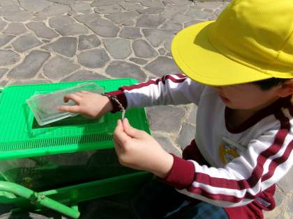 小さな生き物をかわいがり、親しみをもつ経験となりますね。違いに気づき、自分の言葉で知らせることも大切な力として育っていきます。