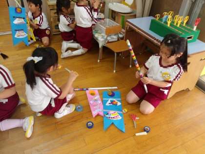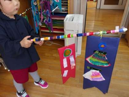 昨日の続きのこいのぼりを登園してきた子どもたちから、作り始めていました。