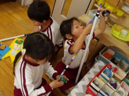 友達と色を合わせたり、出来て物を見せてくれたり…。