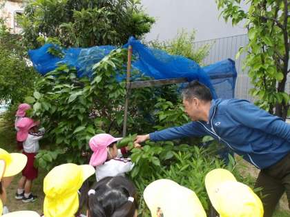 さくらんぼ採り 公開日 2025/04/28 更新日 2025/04/28 園児のようす 今年はサクランボが豊作のようです。 子どもたちは 「サクランボが赤くなってる!」 と大騒ぎ…。 先日、鳥から守るために網をかけてくださったばかりです。 子どもたちが楽しみにしていたサクランボ採りを今日しました! でも、まだ赤くなっていないサクランボもあり、これからも楽しみです!! いいね(0)