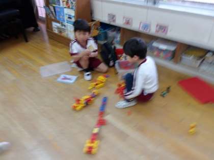 朝、一番の遊び 公開日 2025/05/02 更新日 2025/05/02 園児のようす たくましく、すぐに遊び始める5歳児です。 自分で遊びを見つけ自分で考えて遊ぶことは主体性です。 決められたことを、自分からすることを自主性です。 幼稚園では自分で考え、自分のすることを決める遊びを大切にしています。主体性です。 その中で友達と相談したり、時には喧嘩したり、また折り合いをつけたり…。 遊びの中で、コミュニケーション力、主体性、考える力を育みます。 いいね(0)