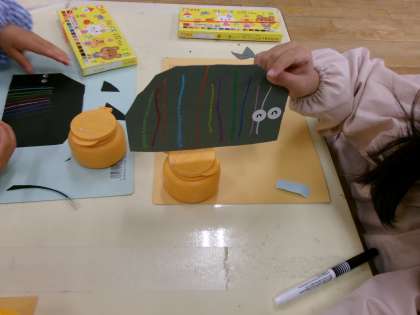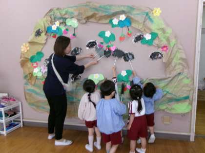 ダンゴムシのペープサートを作って、皆でおさんぽごっこをしました。