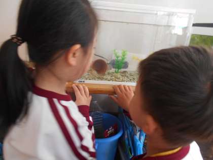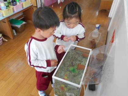 ザリガニの赤ちゃんに餌をあげ、じーっと見ていると…