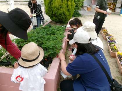 子どもたちと先生が一緒に世話をしてイチゴの収穫を楽しみにしていました!