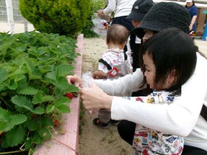 すくすくクラブの子どもたちも帰りにイチゴ狩りをして帰っていただきました。