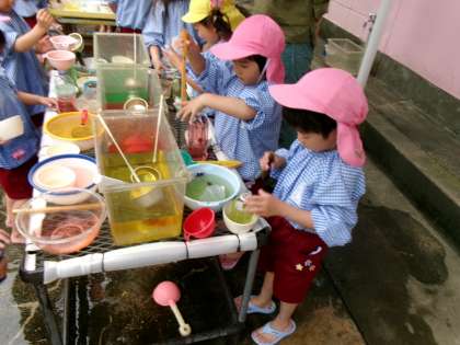 色水を混ぜて、いろいろな色を作って遊びました。