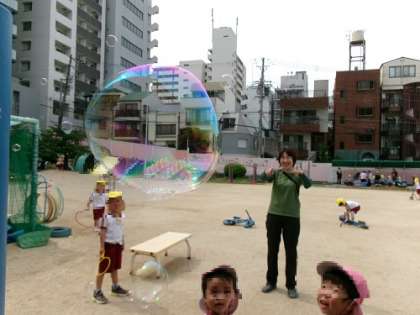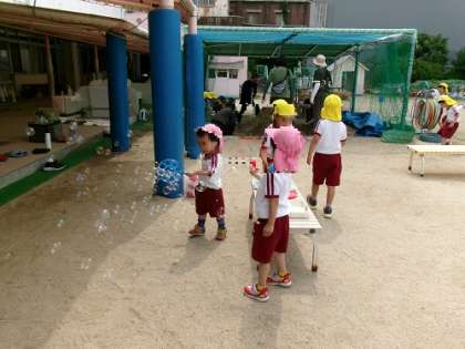 シャボン玉(保育参加) 公開日 2025/05/21 更新日 2025/05/21 園児のようす 今日もシャボン玉で遊んでいました。 コツをつかんで大きなシャボン玉を飛ばす5歳児です。 みんなの歓声が上がっていました。 いいね(0)